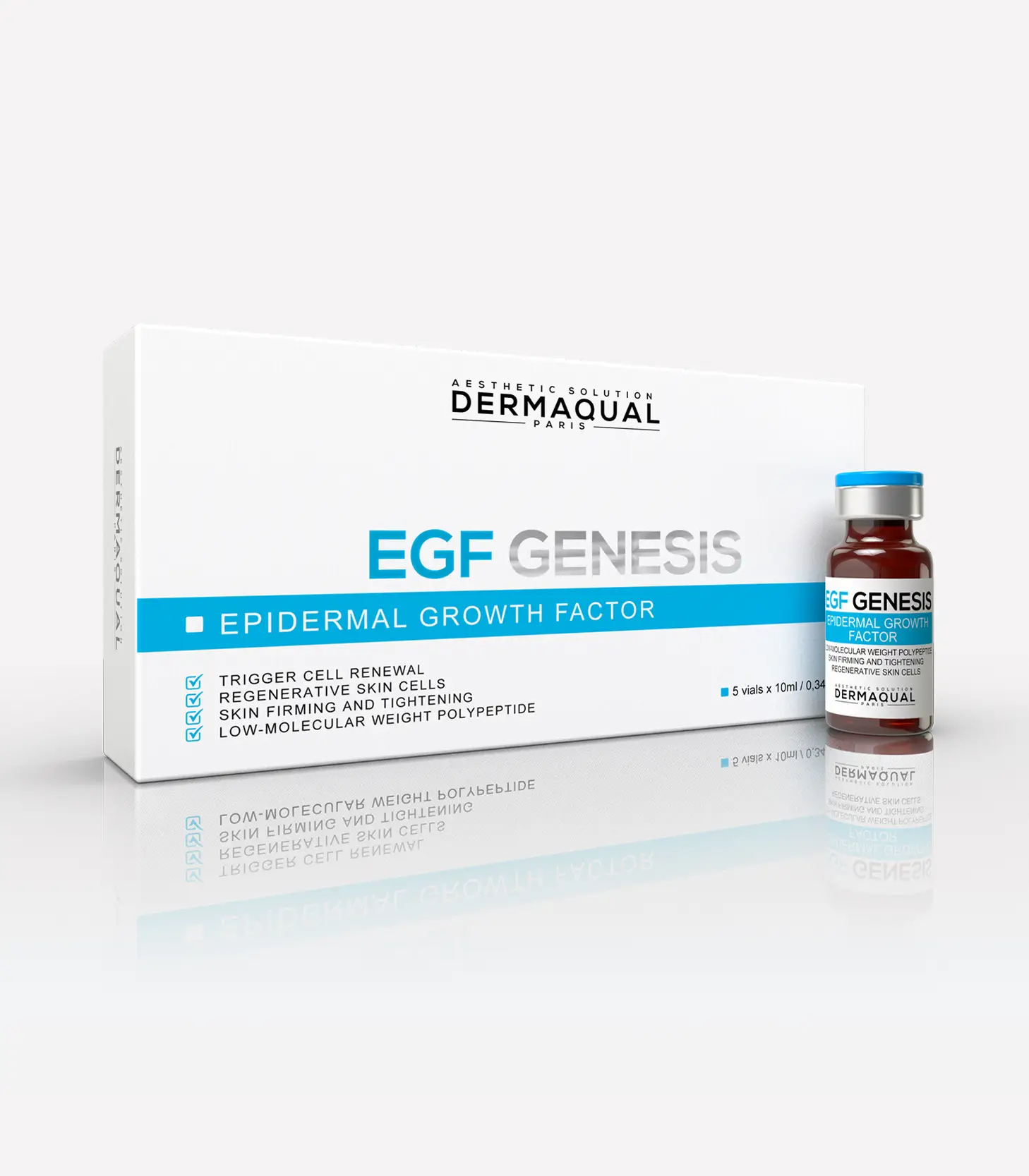 EGF GENESIS™ EGF GENESIS je omlazující koktejl pro pleť, který má intenzivní účinky proti stárnutí a liftingu. Toto exkluzivní složení kombinuje vysoké koncentrace růstových faktorů (nízkomolekulárních polypeptidů) s polyrevitalizačními složkami, jako je PDRN, kyselina ferulová, koenzym Q10 a ceramidy.