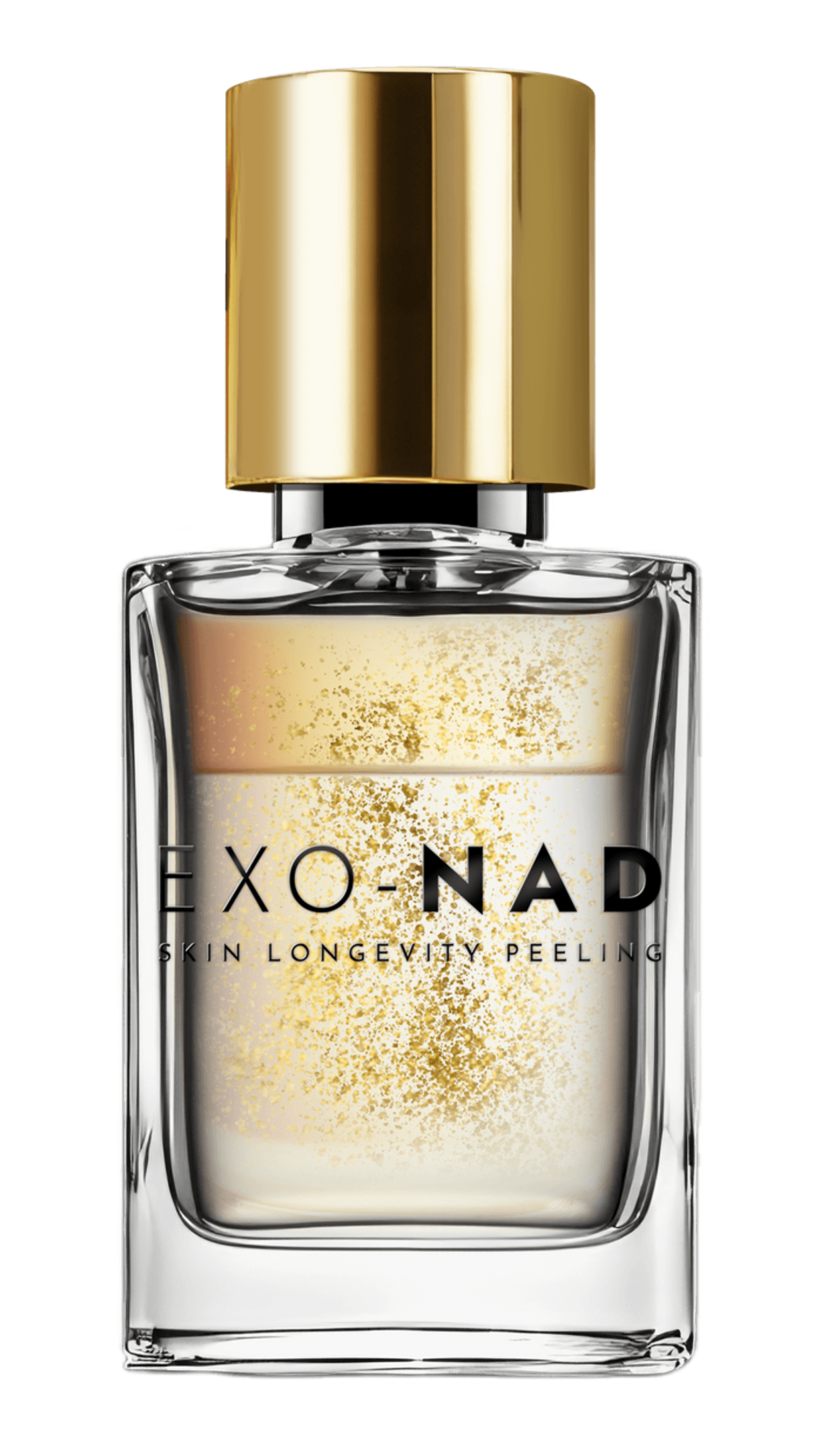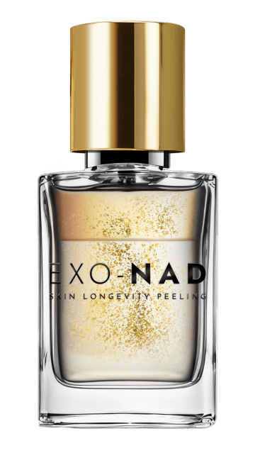 Peeling ExoNAD Skin Longevity Peeling je revoluční Vícefázový peelingový systém určený k obnově a revitalizaci pokožky. Kombinace vědy a luxusu, Tento třístupňový protokol zajišťuje buněčnou dlouhověkost, omlazení tkání a dlouhodobé zdraví pokožky. ExoNAD Skin Longevity Peeling je biohackovací systém z biofarmaceutického výzkumu dlouhověkosti. Vědecky navrženo se syntetickou exozomální strukturou, NAD+ a bioaktivními molekulami.